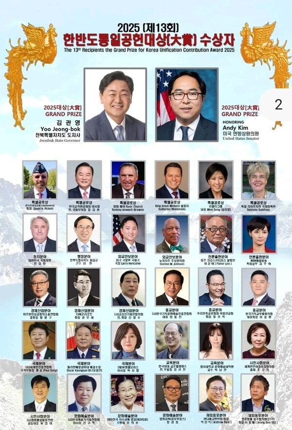 전북특별자치도 김관영 도지사, 앤디 김 美 연방상원의원 등 제13회 한반도통일공헌대상 수상