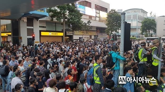 이날 침사추이를 비롯해 훙함, 야우마테이 등 이공대 주변 곳곳에서는 이공대 내 시위자들을 위한 지지 시위가 열렸다.