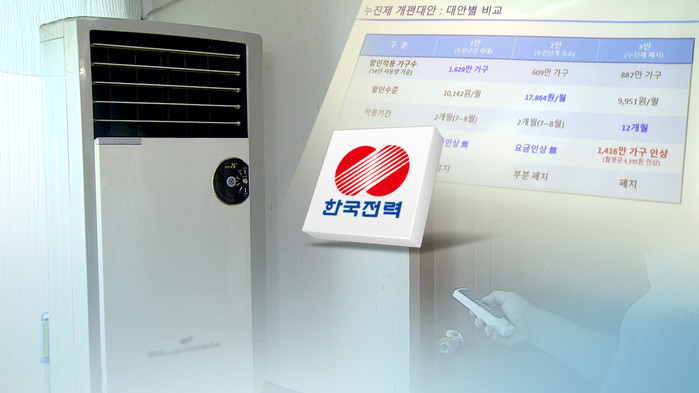 한전은 전기 요금을 '정상화'하는 것이라고 강조했지만 할인 혜택을 받던 가구는 지금은 내지 않던 2만4천700원을 내는 셈이라, 사실상 전기 요금 인상으로 체감할 것이라는 전망이 나온다.