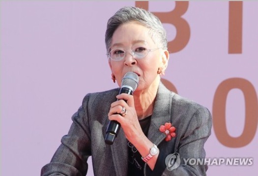 ▲ 부산 팬들과 만난 원로배우 김지미 '제24회 부산국제영화제' 오픈토크 '영화인 김지미' 행사가 열린 4일 오후 부산 남포동 비프광장 야외무대에서 배우 김지미가 인사말을 하고 있다. |