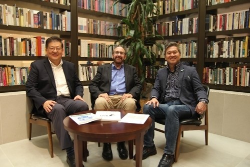 연세대 연합신학대학원은 10월 1∼2일 인천 송도의 연세대 국제캠퍼스와 한국조지메이슨대에서 간디 탄생 150주년 기념 심포지움을 연다고 20일 밝혔다. 심포지엄에 앞서서는 19일 연세대 신촌캠퍼스에서 간담회가 열렸다. 왼쪽부터 연세대 백영민 교수, 레스터 컬츠 조지메이슨대 교수, 연세대 연합신학대학원장 권수영 교수.