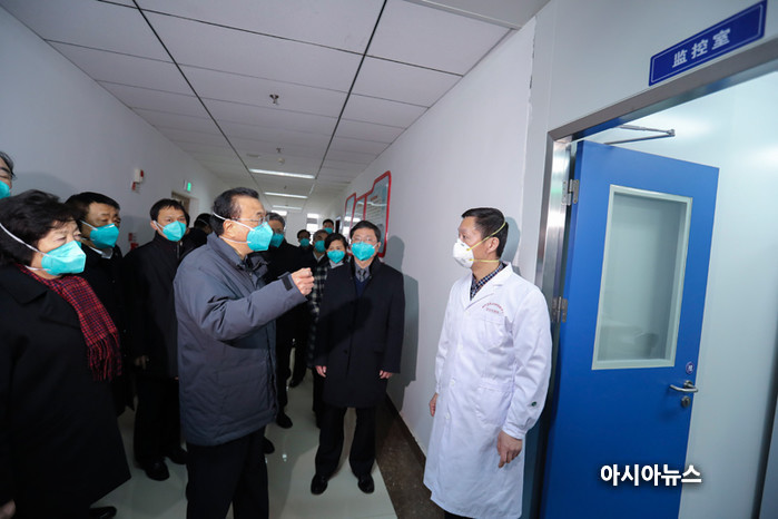 ▲ 중국 리커창 총리가 27일 우한 생체 안전 보호 연구소를 방문해 신종코로나바이러스에 대한 연구를 강화하도록 지시하고 있다. 중국 국무원 제공