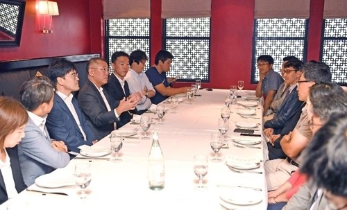 뉴욕특파원단과 기자간담회를 하는 정의선 현대차그룹 수석부회장/연합
