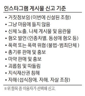 인스타그램이 최근 사회문제로 떠오른 '허위조작정보(가짜뉴스)' 단속을 강화한다. 인스타그램은 이달부터 이용자가 신고할 수 있는 부적절 게시물 분류에 '거짓정보'라는 메뉴를 추가한다고 밝혔다. 음란물, 혐오 발언, 테러·폭력, 총기·마약류 판매 등과 같은 수준으로 규제하기로 한 것이다.
