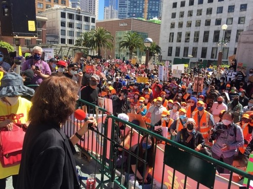 [아시아뉴스 = 이창우 기자] 미국 애틀랜타의 마사지숍 총격 사건 이후 미국내 아시아인에 대한 증오 범죄 규탄이 이어지고 있는 가운데 캘리포니아주 샌프란시스코에서도 아시아계를 행한 증오범죄에 항의하는 대규모 시위가 열렸다.