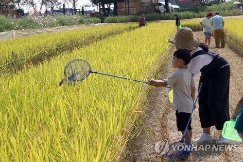 ▲ 김제지평선축제 개막…메뚜기 잡는 어린이 [김제시 제공] |