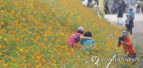 경기 구리시 한강공원을 찾은 시민들은 강변을 따라 끝없이 이어진 코스모스를 감상하며 즐거운 시간을 보냈다.