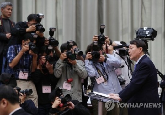 ▲ 윤석열 검찰총장이 17일 서울 서초구 대검찰청에서 열린 국회 법제사법위원회의 대검찰청에 대한 국정감사에서 업무보고를 하고 있다