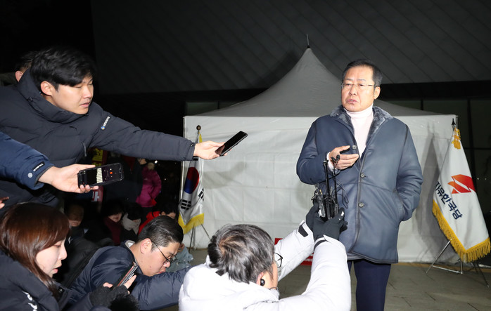홍 전 대표는 이날 청와대 앞 광장에 단식농성 장소로 마련된 텐트에서 황 대표와 만나 "겨울이기 때문에 여름이나 봄·가을에 단식하는 것보다 몇 배로 더 힘이 들 것이다. 더이상 단식하긴 좀 무리지 않느냐"고 만류하며 이같이 제안했다고 기자들에게 전했다.