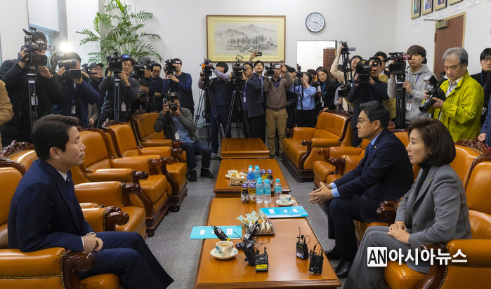 여야 3당 교섭단체 원내대표는 전날에 이어 이날도 오후에 회동하고 협상을 이어갔으나 구체적 논의에는 들어가지 못했다.