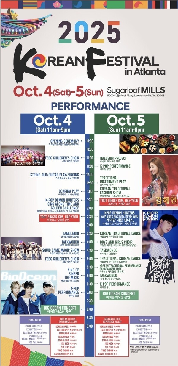 ▲ 2025년 애틀란타 코리안 페스티벌 일정표