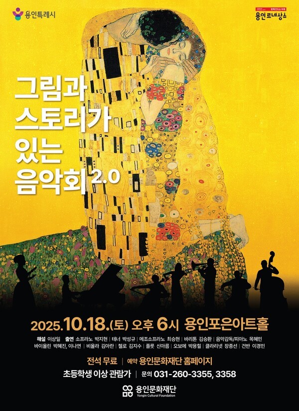 용인특례시(시장 이상일)는 오는 2025년 10월 18일(토) 오후 6시, 용인포은아트홀에서 시민들을 위한 특별한 문화공연 **‘그림과 스토리가 있는 음악회 2.0’**을 개최한다. 이번 공연은 용인문화재단이 주최하며, 예술과 음악, 그리고 감동적인 이야기로 가득한 무대를 통해 시민들에게 깊은 울림을 선사할 예정이다.