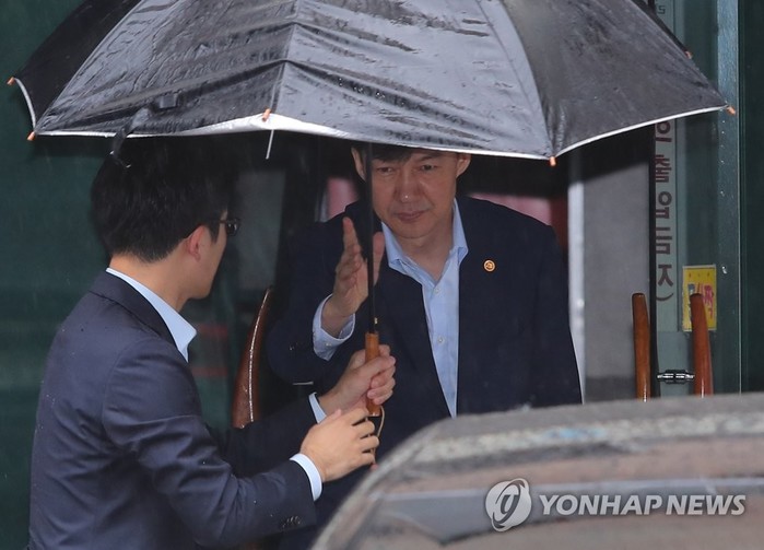 | 조국 법무부 장관이 7일 오전 출근을 위해 서울 서초구 자택을 나서고 있다. |