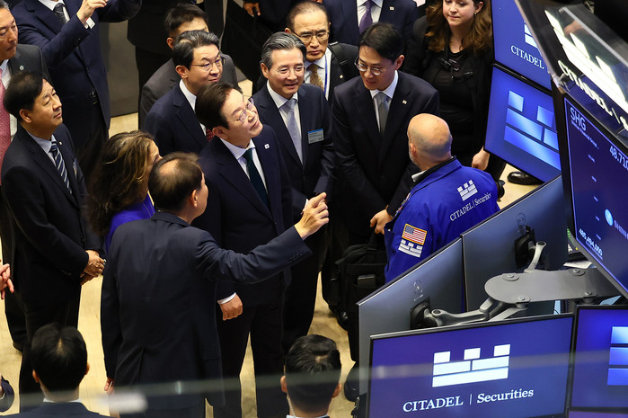 이 대통령은 이날 뉴욕증권거래소에서 열린 ‘대한민국 투자 서밋’ 행사에 참석해 “최근 한국 주식시장이 연일 최고치를 경신하고 있지만, 몇 가지 요인으로 인해 여전히 저평가되고 있다”고 평가했다. 이어 “새 정부는 이런 문제를 해소하기 위한 여러 방안을 준비하고 있다”고 밝혔다.