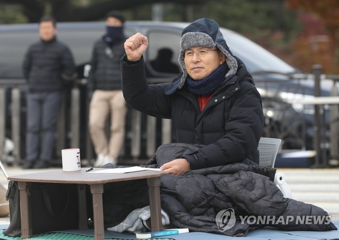 황 대표는 경호상 이유 등으로 분수대 광장에서 천막 설치가 불허돼 지난 이틀 동안 밤늦게 국회 본청 계단 앞으로 이동, 천막에서 잤다.
