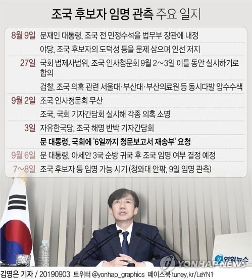 文대통령, 조국 후보자 보고서 '6일 기한' 재송부요청…여야 격렬공방