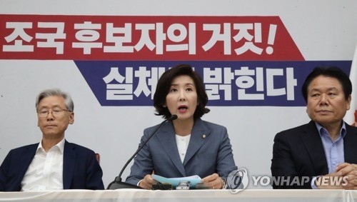 나경원 원내대표는 국회에서 '조국 후보자의 거짓! 실체를 밝힌다'는 이름으로 열린 기자간담회에서 "한국당이 그토록 법적인 기한 5일이 필요하다고 말했는데 청와대가 (재송부 요청 기한을) 3일 후인 6일로 정한 것은 청문회 없이 임명을 강행하겠다는 내심을 보인 것"이라고 비판했다.