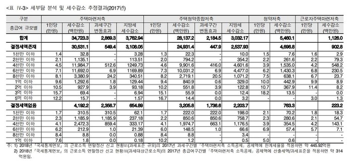 보고서의 세부담과 세수감소 추정 결과에 따르면 주택청약종합저축으로 국세 세수가 총 281억3천720만원(2017년 기준) 감소했다.