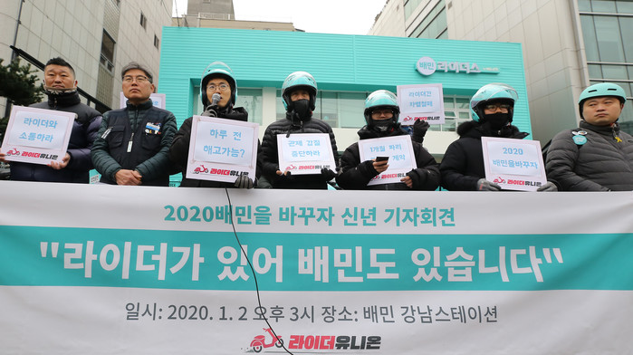 '라이더 근무조건 개선 촉구'…′라이더유니온, 2020 배민을 바꾸자′ 기자회견