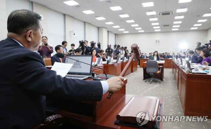 | ▲ 2019 국정감사가 시작된 지난 2일 국회에서 열린 교육위원회 국정감사에서 이찬열 위원장이 의사봉을 두드리며 국감 시작을 알리고 있다. |