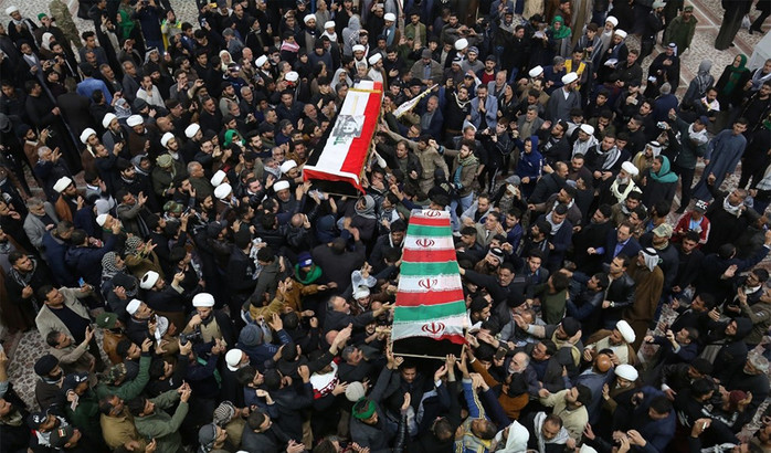 | ▲ 이라크 시아파 성지에서 거행된 솔레이마니 시신 운구 행사