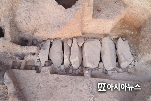 63호분은 길이가 2m에 이르는 넓적한 뚜껑돌 7개를 얹고 사이를 깬돌로 메운 뒤 점질토를 발라 밀봉했다. 시신과 부장품을 두는 매장주체부는 조성 당시 모습이 그대로 남았을 것으로 짐작된다. 연구소는 소형 카메라로 내부를 조사해 토기들을 확인했다.
