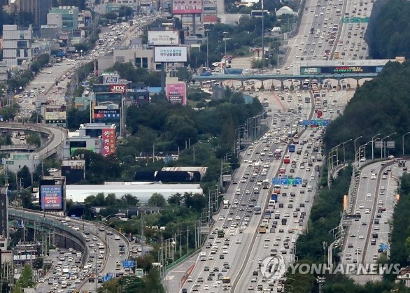 이날 오전 9시 승용차로 서울 요금소를 출발해 전국 주요 도시까지 걸리는 시간은 부산 8시간, 울산 7시간 30분, 대구 7시간, 광주 6시간 50분, 대전 4시간 40분 등이다.