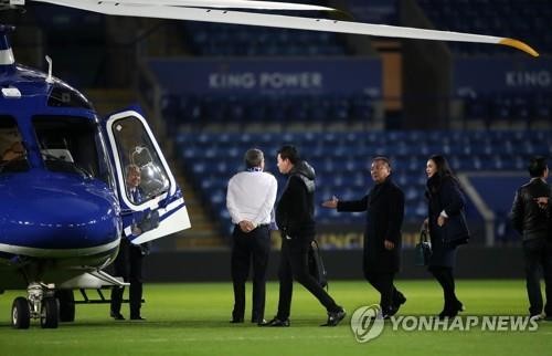 2017년 킹파워 스타디움에서 헬기를 타고 떠나는 위차이 구단주(오른쪽 세 번째)/연합
