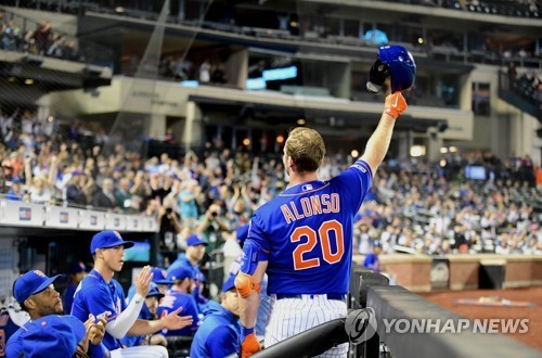 알론소는 28일(한국시간) 미국 뉴욕 시티필드에서 열린 애틀랜타 브레이브스와의 홈경기에서 0-1로 뒤진 1회 말 왼쪽 펜스를 직선타로 넘어가는 솔로 아치를 그렸다.