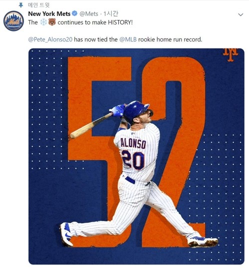 알론소 52번째 홈런 소식 알린 뉴욕 메츠 트위터