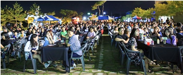 푸드트럭이 운영돼 간단한 음식을 구입해 먹을 수 있었고 야외 가든 처럼 꾸며진 객석에는 가족과 연인들로 유리섬박물관 앞마당을 가득 메웠다.