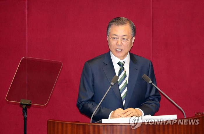 | ▲ 문재인 대통령이 22일 오전 국회에서 내년도 예산안에 대한 시정연설을 하고 있다. |