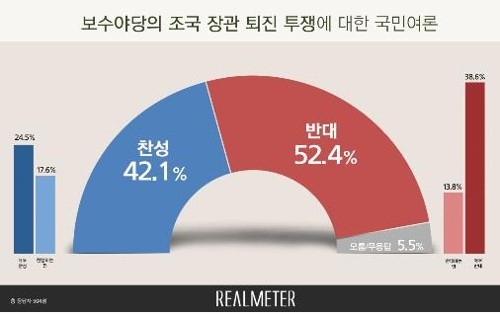 다만 한국당 황교안 대표를 비롯한 릴레이 삭발, 한국당과 바른미래당의 국정조사 요구서 제출 등 보수 야당의 '조국 퇴진' 투쟁을 두고는 반대 여론이 찬성 여론보다 높았다.