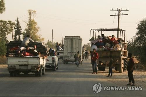 | ▲ 터키군의 공격 피해 피란길 오른 라스 알-아인 주민들. AP=연합뉴스 |