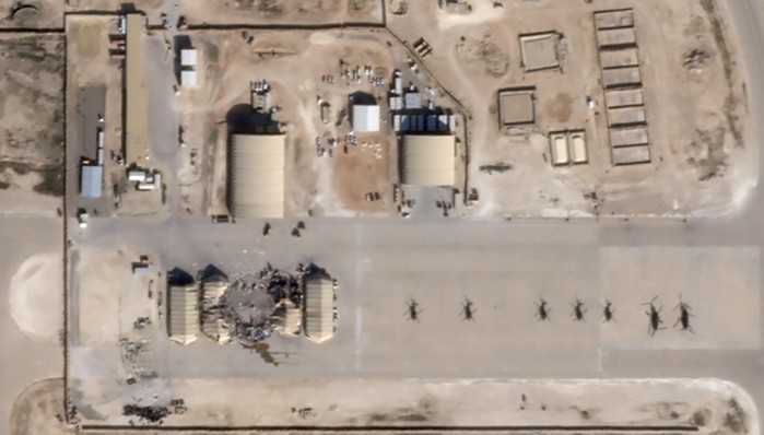 ▲ 미사일 공격 받은 이라크 美공군기지의 피해 흔적. 연합뉴스 제공