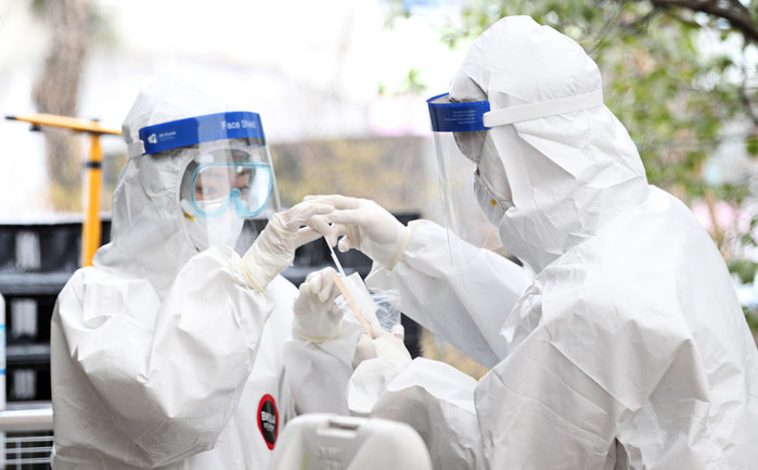 ▲ 서울의 한 보건소 선별진료소에서 의료진이 코로나19 검체를 채취하고 있다/ 사진= 아시아뉴스DB.