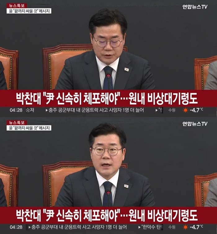 더불어민주당 박찬대 원내대표가 윤석열 대통령에 대한 신속한 체포를 촉구했다.