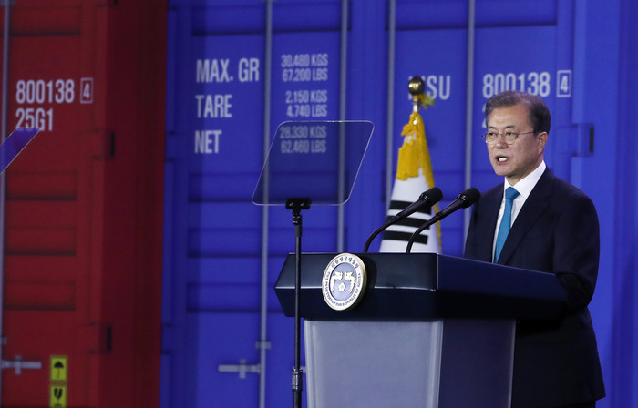 ▲ 문 대통령, '무역의 날' 기념사 문재인 대통령이 5일 삼성동 코엑스에서 '무역의 날' 기념사를 하고 있다. [연합뉴스 제공] |