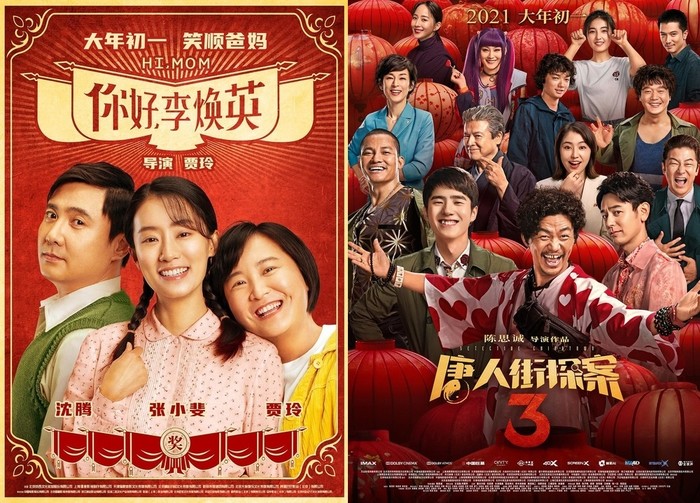 ▲ 중국 영화 '안녕,엄마(좌측)'와 '디텍티브 차이나타운3' 상영 포스터 이미지/ 사진= 각사 웹페이지 갈무리.