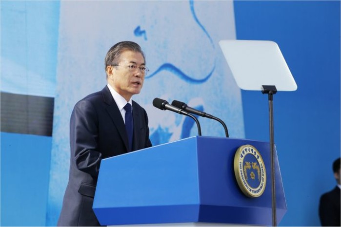| ▲ 문재인 대통령이 16일 오전 경남 창원시 경남대학교 운동장에서 열린 제40주년 부마민주항쟁 기념식에서 기념사를 하고 있다. 이번 기념식은 지난달 부마민주항쟁 발생일인 10월16일이 국가기념일로 지정되고 첫 정부주관 행사로 열렸다. |