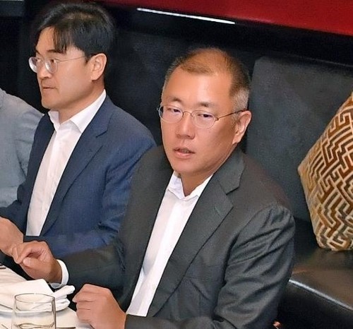 뉴욕특파원단과 기자간담회를 하는 정의선 현대차그룹 수석부회장/연합