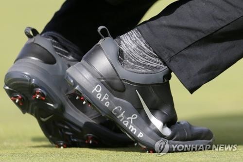 | ▲ 할아버지의 애칭을 써넣은 챔프의 골프 신발. |