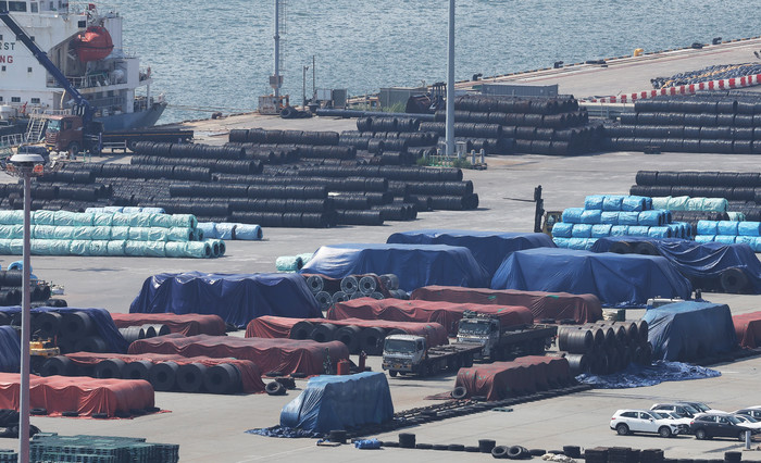 | ▲ 경기도 평택항에 쌓여 있는 철강 제품. 연합뉴스 제공 |