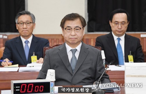 ▲24일 오전 서울 여의도 국회에서 열린 정보위원회에 참석한 서훈 국정원장이 자리하고 있다.