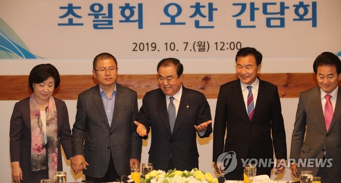 이날 회동에는 더불어민주당 이해찬 대표가 '초월회가 정쟁을 위한 성토의 장으로 변질됐다'며 불참했고, 자유한국당 황교안·바른미래당 손학규·정의당 심상정·민주평화당 정동영 대표 등 야당 대표들은 참석했다.