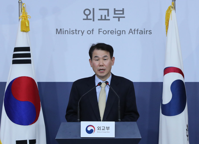 정은보 한미 방위비분담협상 대사가 19일 오후 서울 종로구 외교부 브리핑룸에서 제임스 드하트 미국 국무부 선임보좌관과의 한미 방위비분담금 협정(SMA) 협상 결과를 설명하고 있다. 2019.12.19 연합뉴스 제공