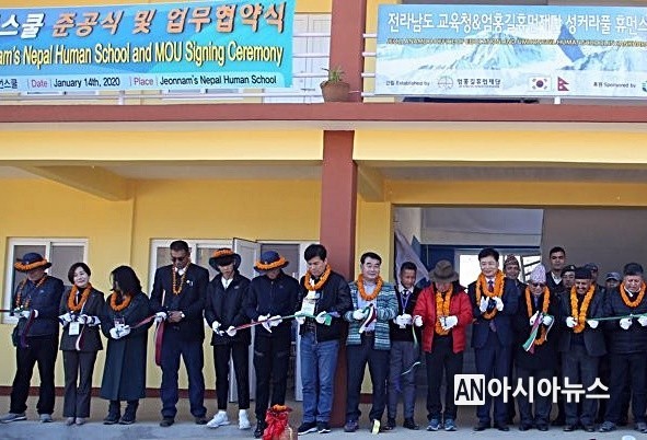 ▲ 과거 네팔에서 가진 전남휴먼스쿨 준공 모습. 전남도교육청 제공