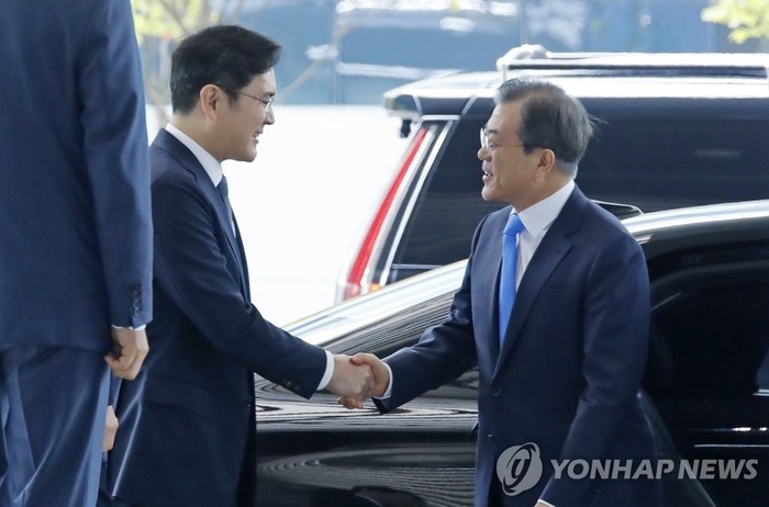 이날 문 대통령은 “삼성이 가전에 이어 반도체, 휴대폰, 디스플레이 분야에서 늘 세계에서 앞서나가고 있고, 그것으로 대한민국 경제를 늘 이끌어 주고 계셔서 늘 감사드린다”고 말했다.