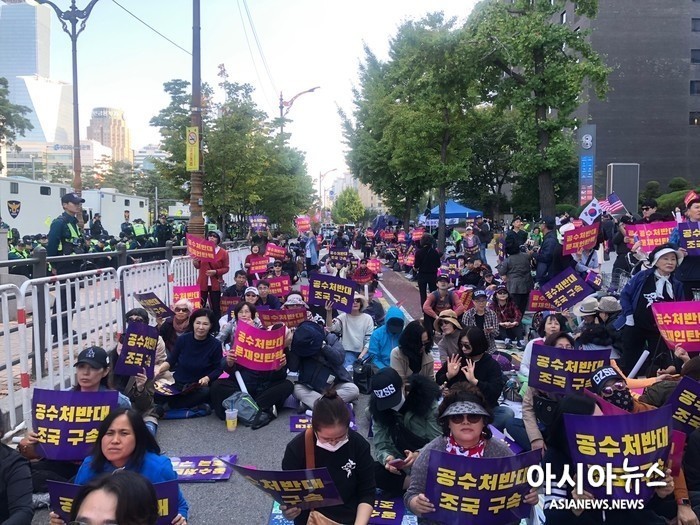 조 전 법무장관이 사퇴한 후 첫 주말인 19일 국회 정문 앞에서는 검찰개혁과 고위공직자범죄수사처(공수처) 설치 등을 요구하는 시민연대 집회와 문재인 대통령 탄핵을 촉구하는 보수단체 집회가 열렸다.