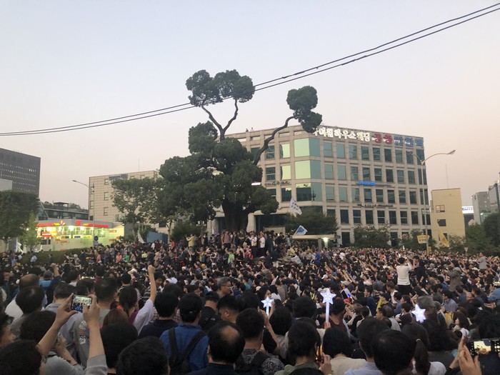 시위가 한창인 오후 6시 서초역 7번출구 일대는 집회에 참가하려는 사람들로 인산인해를 이루었다. 서초역부터 시작해 서초경찰서까지 근 1.5km 구간의 도로와 인도는 시위대가 점령해 발 딛을 틈 없었다. 취재를 위해 반대편으로 이동하는 과정에 많은 시간이 소요됐으며 인파를 뚫고 간다는 것 자체가 불가능에 가까울 정도였다.